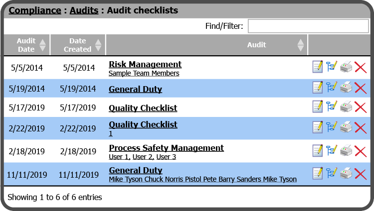 The Audit Checklists (Legacy) Grid lists the Audit Checklists with dates and Administrative functions.