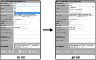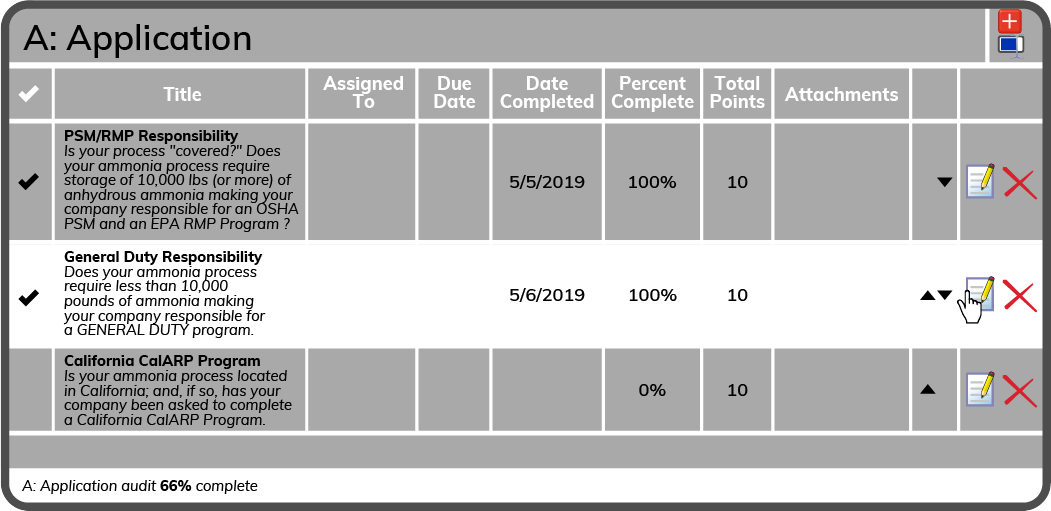To complete an MI Audit Item, select the Edit Icon to the right of the Item.