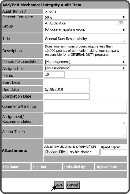Note: Audit Item ID is not an editable field Edit MI Audit Item.