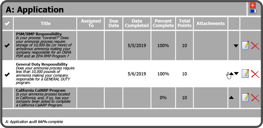 To move an Audit Item to a different Group, select the Edit Icon to the right of the Item.
