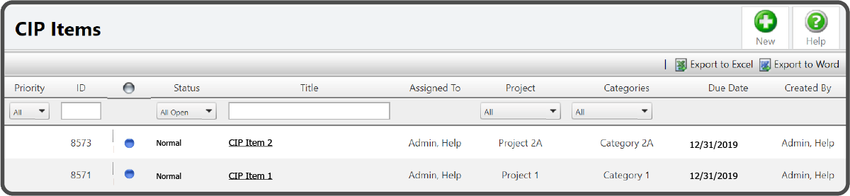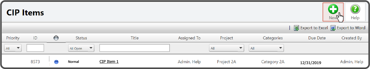 The other way to add a New CIP Item is from within View CIP Items. Select the New Button