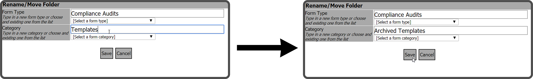 This will open the Rename/Move Folder window. Change the sub-folder name and select the Save Button