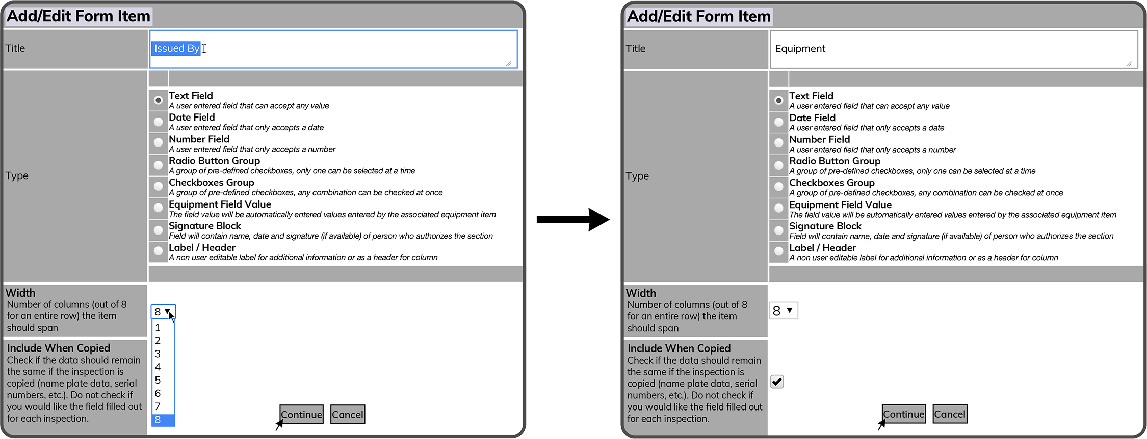 Edit Form Template Fields