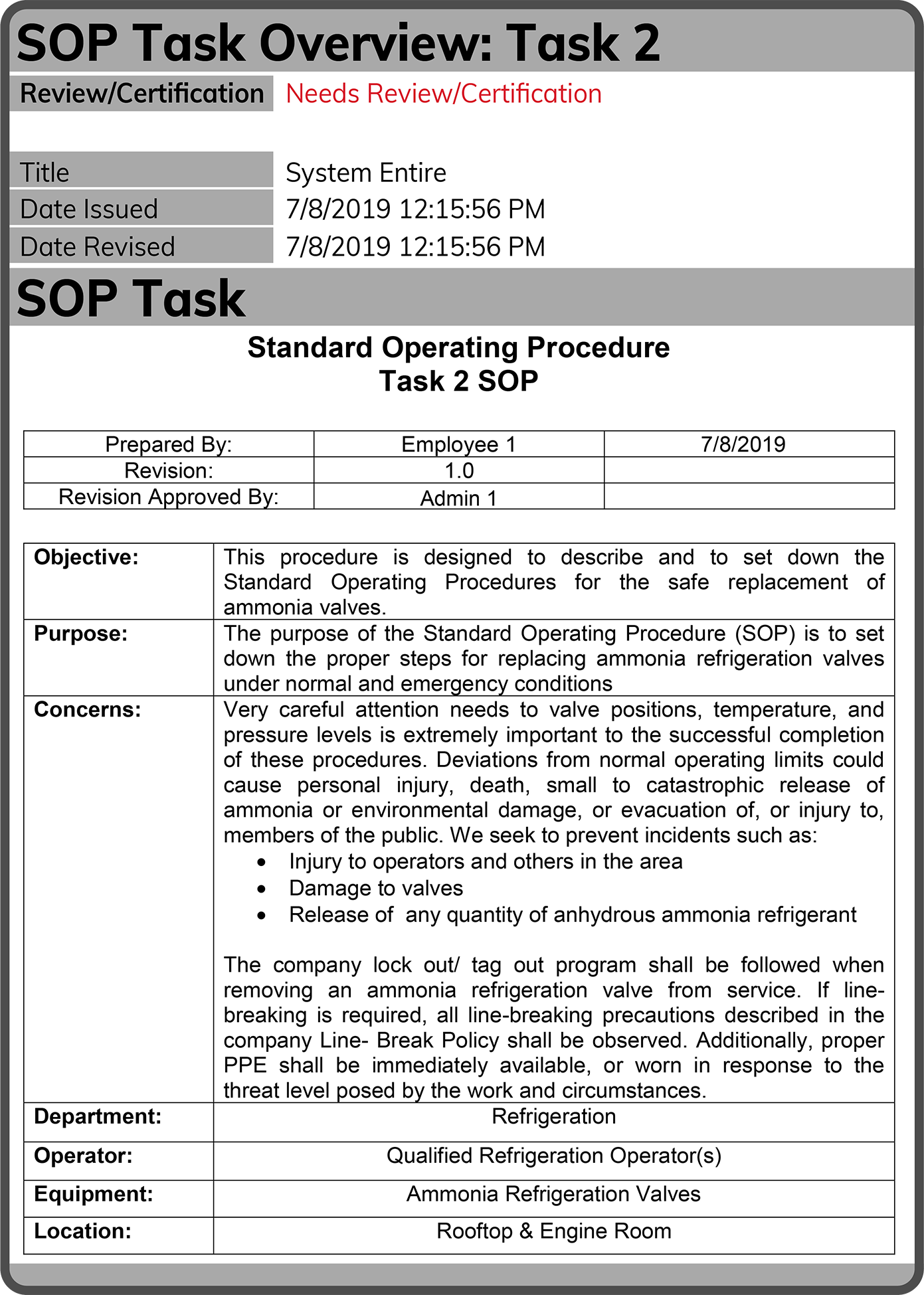 After saving the SOP, you can see the changes in an Overview of the SOP Task.