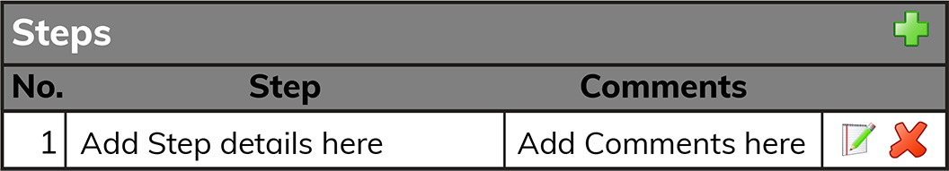 To add Steps to a Workorder, select the Add to the right of the Steps Title.